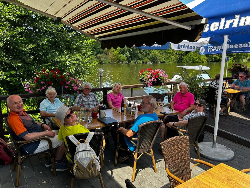 Mit eBikes ausgestattet fuhren wir überwiegend auf Radwegen und wenig befahrenen Nebenstraßen. An vier Tagen kamen insgesamt 150 km mit 1100 Höhenmetern zusammen. Das war zwar eine Herausforderung, doch musste sich auch bei großer Hitze niemand überfordern und es war ein Genuss sich auf den Abfahrten den Wind um die Ohren wehen zu lassen. Dank und Respekt haben sich die vielen Autofahrerinnen und Autofahrer verdient, die auch für unsere Radgruppe gebremst haben!