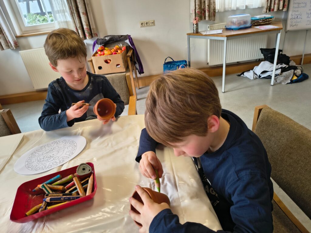 Am Samstag, den 21. März 2026 trafen sich die Mitglieder des SWV und der Familiengruppe im Lesesaal des alten Rathauses. Jutta Sorg bereitete eine Bastelaktion sowie eine Osterrallye vor: die Kinder pflanzten Ostergras in zuvor bemalte Töpfchen und wer noch Lust hatte, konnte schöne Ostermandalas gestalten.