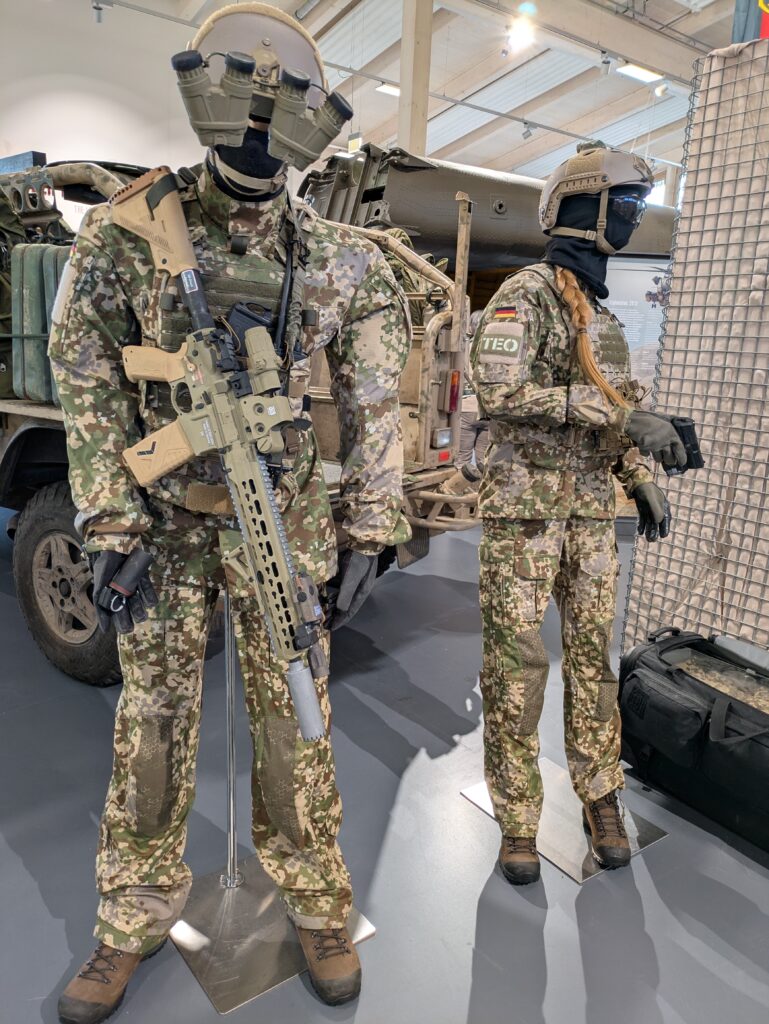 Erst wenn das harte, körperlich und psychisch herausfordernde Verfahren positiv abgeschlossen wird, werden die Männer ( bisher haben es noch keine Frauen in die Eliteausbildung geschafft) zur 3 jährigen Ausbildung zugelassen. Weitere harte Trainingsjahre liegen vor den Probanden, da verabschiedet sich so mancher von der Spezialausbildung und bleibt bei der „normalen“ Bundeswehrlaufbahn. Weitere Stationen in der Ausstellung sind die Geschichte, die Verteidigungslage unseres Landes, die Bündnispartner, die Ausrüstung z. B. die hochtechnisierten Helme, die Fahrzeuge usw.